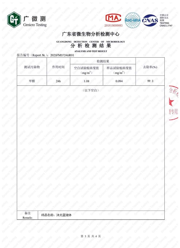 以上是沐光蓝的甲醛去除率CMA检测报告