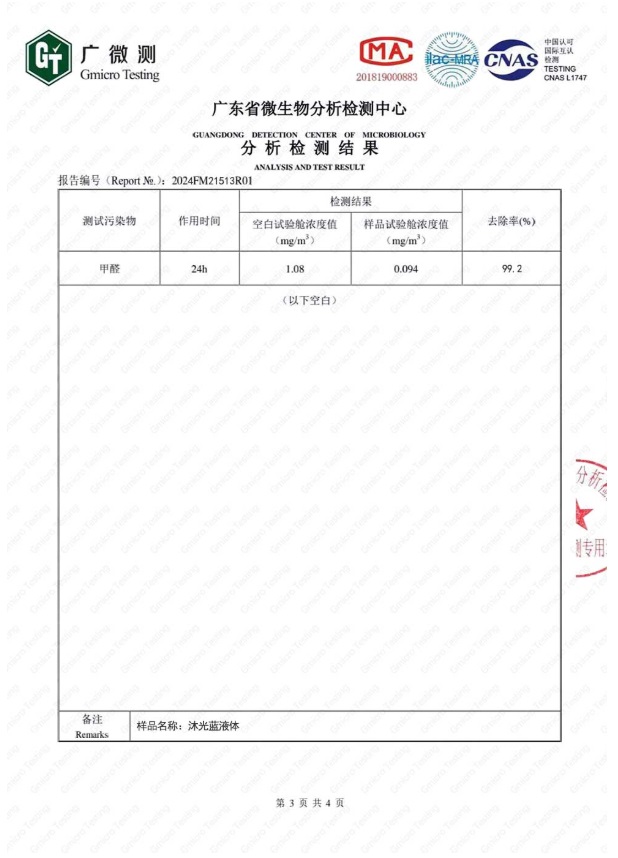 以上是沐光蓝的甲醛去除率CMA检测报告