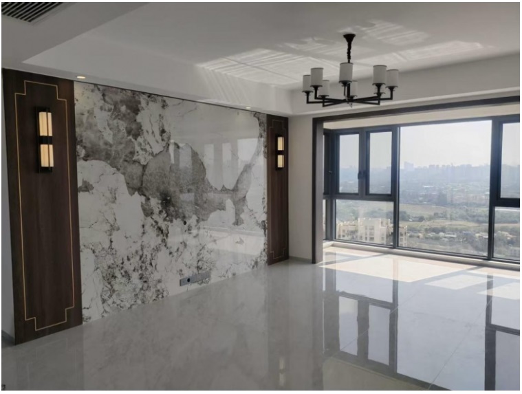 “墙面部分采用了岩板,触摸后能感受到质地的硬朗”,一名巡检专家说。该工地卧室的墙面采用了艺术涂料,光泽度、美观度都处于较高水平,厨房墙砖窗口排版取消7字拐,分中排版口内外瓷砖美观衔接自然。