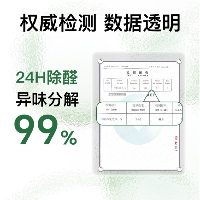 权威认证:拥有国家的CMA/CNAS除醛报告,甲醛去除率99%。