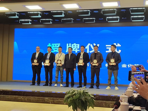 大会伊始,全联房地产商会执行监事长、中国建筑节能协会副会长孟繁军上台为山东佰亿缘门窗有限公司董事长侯胜磊,西安东伟幕墙门窗科技有限公司(素派门窗系统)董事长张杰,辽宁雨虹门窗有限公司总经理常文盛,河南众成门窗有限公司董事长冯勇前,杭州坤鹏无界科技有限公司董事长杨坤,河北金筑友塑胶科技有限公司总经理金化英颁发了全联房地产商会节能门窗分会副会长的聘任牌匾。