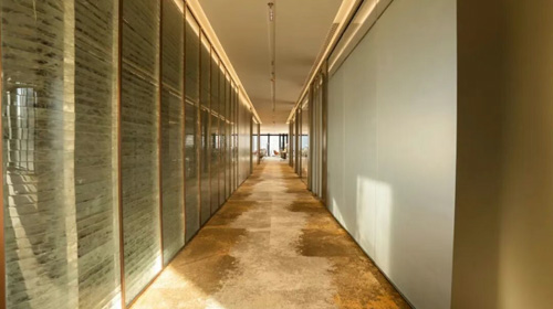 为了最大化这一区位优势,维晟中心做出一项关键的技术突破:将楼体的核心筒偏置于西侧,让建筑主体得以向东侧公园尽量“打开”,创造更多观景界面、享受更多自然光照,告别了传统核心筒居中带来的局促与昏暗,也让渡出更加开阔的使用空间。