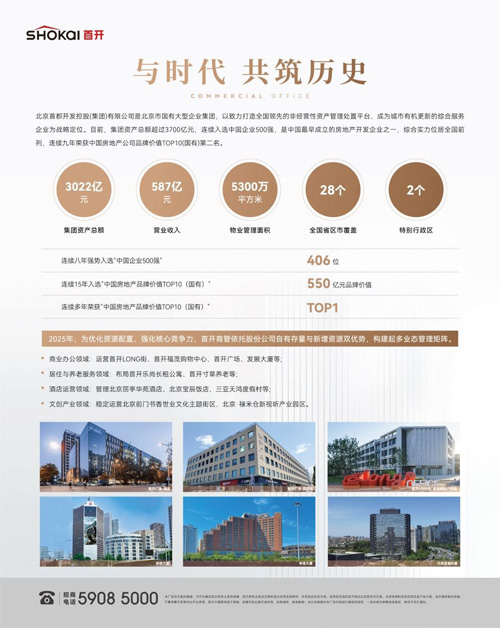 此次获奖得益于首开商管平台在商业办公和产业生态建设上的深耕细作。这份荣誉,是对首开商管平台过往努力与创新突破的高度认可,更是对未来发展的殷切期许。未来,首开商管平台将持续聚集新质产能、强链补链、加速资产管理和运营,书写北京市商业办公行业高质量发展的新篇章。