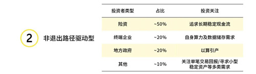 中国数据中心市场的投资人主要分为两类: