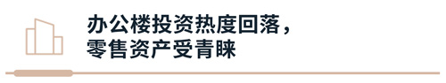 从资产类别来看,办公楼以42%的成交金额占比和38%的成交宗数占比位居主导地位,不过,其投资热度较往年有所下降。相对而言,零售资产更受资本青睐。据媒体报道,第四季度,英格卡购物中心宣布与高和资本达成战略合作,设立一支专项不动产基金,将共同持有包括北京荟聚在内的三座购物中心资产,英格卡将继续负责项目的管理和运营。