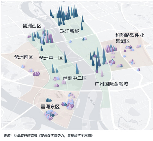 市场正分片区逐步企稳,迈向供需再平衡。以人工智能、游戏等为代表的新兴行业是核心驱动力,全年贡献了约40%的新增租赁面积,其需求高度集中于琶洲、广州国际金融城等规划能级高、产业导向明确的新兴商务区,带动这些片区率先修复。