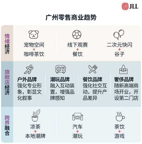 2026年,广州零售市场在政策支持与消费升级双重驱动下,展现出结构性复苏的积极态势。情绪价值驱动的消费趋势将深化,体验型、主题化、强互动的新业态将持续涌现。“体育+文旅+商业”融合趋势加速,大型赛事、演唱会及电影节等文体活动持续释放流量效应。依托本地雄厚的游戏、动漫与电竞产业基础,广州助力传统商圈向沉浸式、社交化体验空间转型。