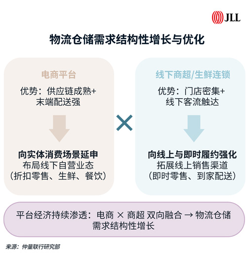 需求增长点将聚焦商超电商新业态融合:电商平台加速向实体消费场景延伸,布局多元自营业态;连锁商超则积极构建线上渠道,发展即时配送。这一趋势将催生更多城配仓储需求,为市场提供长期韧性支撑。