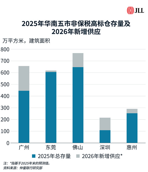 供应端预计仍将维持高位,广深莞佛四城2026年新增供应预计均超100万平方米。项目间竞争将进一步加剧,租金仍面临下调压力,续租议价空间或将扩大。预计市场将出现明显分化,潜在需求或将围绕“性价比”更灵活地在市场间配置。