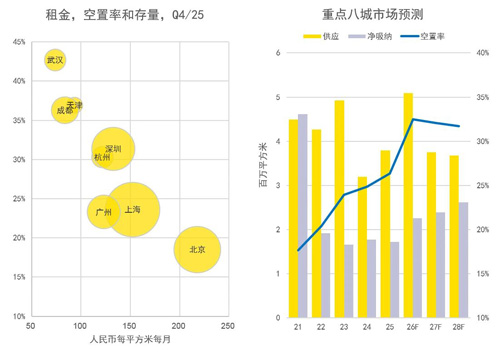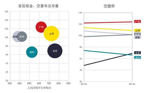 中国办公市场仍被两股相反力量夹在中间:租金下行与期望上升。主要城市的空置率徘徊在历史高位附近,持续挤压业主收入。但从长期生存角度看,唯一可行的路径并不是收缩,而是反其道而行——投资品质、服务与体验,以争取并留住租户。