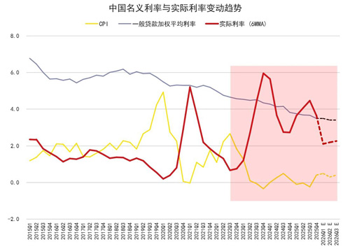 过去一年多以来,用以衡量实体经济融资成本的一般贷款加权平均利率下行幅度有限,而同期通胀率持续处于低位乃至负区间,致使实际利率被动攀升至历史较高水平。这一宏观环境对权益类资产及房地产投资构成了显着抑制。