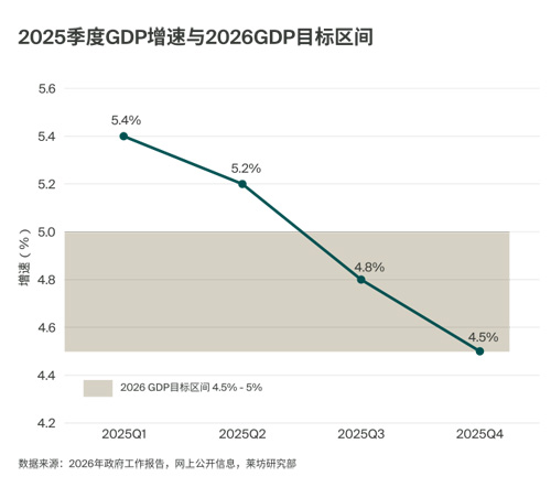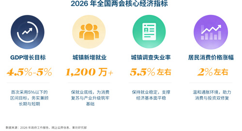 2026年政府工作报告将全年经济增长目标设定为4.5%-5%,系首次将GDP年度目标划定在5%以下,背后是兼顾现实与长期的务实考量,更是中国经济向高质量发展转型的明确信号。区间式安排相较单一目标,既为稳就业、稳预期锚定方向,也为调结构、防风险留足政策空间,更衔接2030年GDP总量目标,为“十五五”规划落地定下稳健基调。