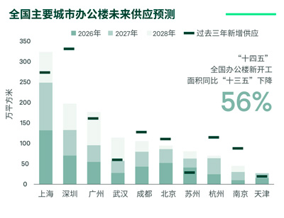 2026年全国十城办公楼新增供应量预计达470万平方米,同比小幅增长7%,2027年和2028年将逐步回落至420万平方米和350万平方米。