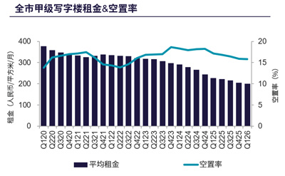 全市甲级写字楼租金及空置率