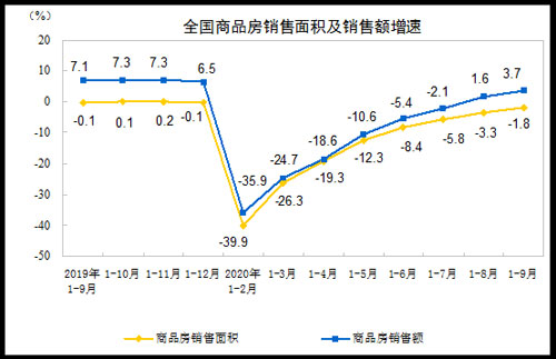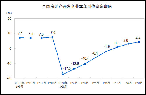 国家统计局19日发布的数据显示,9月,房地产开发投资、销售、到位资金等多指标累计增速连续7个月反弹,其中,开发投资连续4个月正增长,销售额连续2个月正增长,房企到位资金连续3个月正增长。