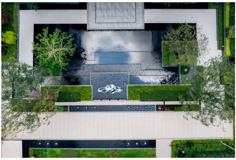 成都邦泰朗境则以度假酒店标准,打造超1000㎡的“水景剧场”:镜面湖水静谧,点缀灵动涌泉;沿岸种植乌桕、红枫等名贵乔木,构建四季变幻的立体景观。人性化的边角弧度与隐蔽排水设计,兼顾视觉美感与后期维护。