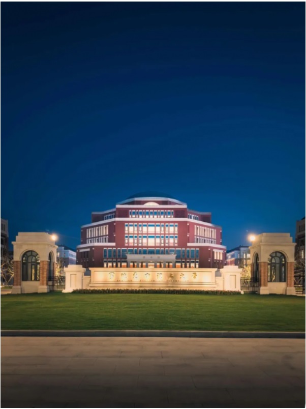 漫步校园,最引人注目的是中轴线上的图书馆建筑。在创始人朱兴良先生的指导下,金螳螂设计团队巧妙运用"天圆地方"的东方设计元素,通过红砖拱券、圆形穹顶等经典建筑语言,打造出既彰显文化自信又符合现代教育需求的学习空间。朱兴良指出:"我们要让建筑说话,让空间育人。"