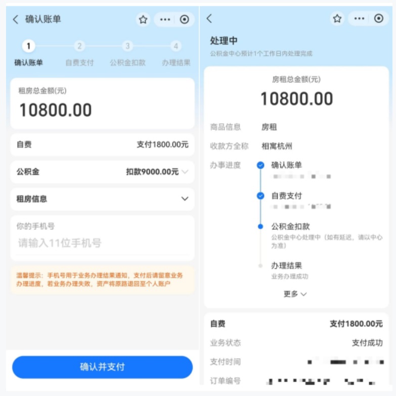 据了解,所有符合浙江省直公积金“直付房租”申请条件的租客如租住相寓房源,只需登录最新版相寓APP,即可全程线上办理公积金直付房租。从身份认证、公积金授权到支付确认,整个流程仅需几分钟,无需线下奔波或长时间等待。公积金部分由系统实时核验并划转,自费部分可通过支付宝便捷支付,真正实现“一次确认、两步结算”。支付宝作为技术支持方,在身份认证、数据加密与支付通道等方面保障交易安全高效。