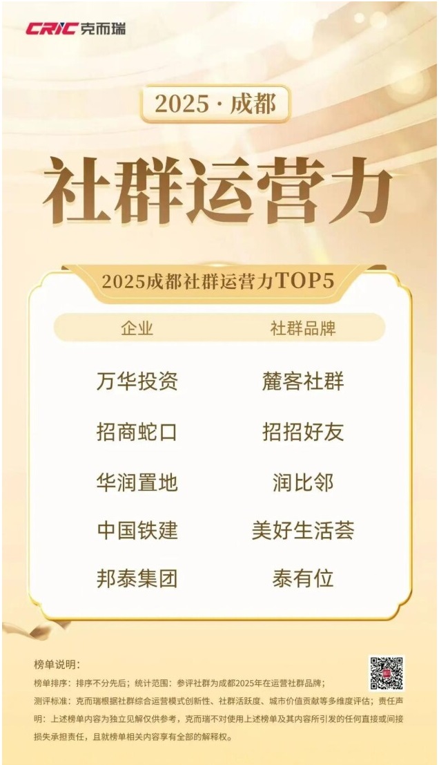 邦泰集团品牌价值的构建,还体现在其社区服务创新上。“泰有位”社群体系致力于营造“邦泰没有陌生人”的社区,自2024年成立以来,成功孵化400余个社群组织,累计发起1000余场社群活动,不仅提升了业主满意度与品牌美誉度,更助力在售项目的客户转化,实现了“口碑与业绩”的双丰收,也让邦泰斩获“2025 成都社群运营力 TOP5”荣誉。