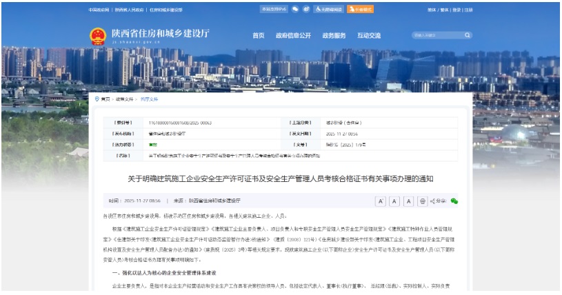 2025年11月26日,陕西省住建主管部门印发专项通知,明确“建筑施工企业法人需持有安全生产考核合格A证”为企业申请、延期安全生产许可证(以下简称“安许”)的必要前置条件,2026年3月26日为强制达标截止日。结合陕西此前发布的安管人员考核管理规定,当前本地法人持A证已形成“条件清晰、流程规范、处罚刚性”的监管体系。作为陕西建筑行业合规数字化“领路者”,阳光智建第一时间完成新政拆解,助力区域企业紧扣政策节点推进合规,避免逾期陷入经营危机。