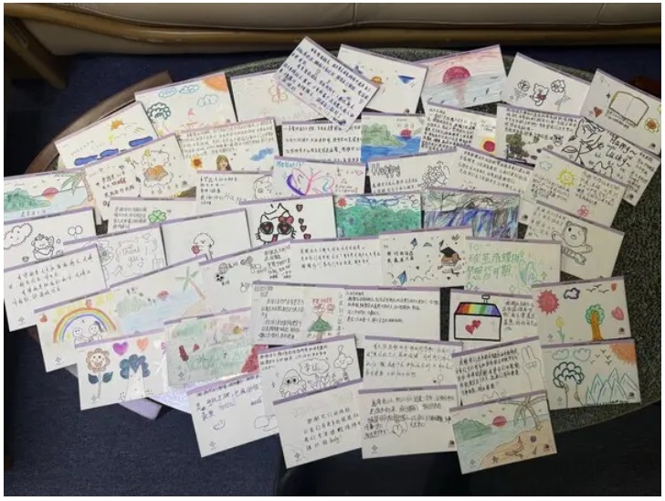 活动视频中,琳琅满目的义卖物资、热火朝天的参与场景、工作人员忙碌的身影交织成动人画面,生动还原了"以义卖传情,用行动助梦"的公益初心。而更让人动容的是,当捐赠物资顺利送达学子手中后,孩子们亲手制作的感谢卡片陆续反馈回来——稚嫩的字迹里满是真诚,"谢谢叔叔阿姨的帮助,我会好好读书""新的文具和球拍我很喜欢,谢谢你们的关心",简单的话语搭配可爱的手绘图案,成为对此次公益行动最珍贵的回应。