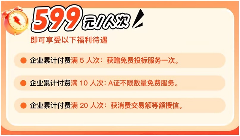 ·累计付费满5人次:赠送企业投标服务1次(可自用可转赠),直省市场500元+代办费;