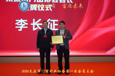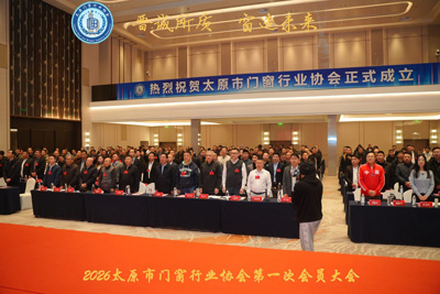 2026年1月25日,太原市门窗行业协会成立大会暨2026行业规范与高质量发展高峰论在太原市温德姆酒店顺利召开。应第六期系统门窗北大高级研修班副班长、太原市门窗行业协会会长、山西力尔盾门窗科技有限公司董事长李长征和全联房地产商会节能门窗协会副秘书长、太原市门窗行业协会副会长、山西太玻玻璃科技有限公司董事长巩星辰的邀请,中国建筑节能协会副会长、全联房地产商会执行监事长孟繁军,中能建筑协会系统门窗分会专家智库名誉组长、系统门窗专家委员会名誉主任邓小鸥,中国建筑节能协会系统门窗分会主任委员、系统门窗专家委员会主任、沈阳乐道建筑科技有限公司总经理胡宝升,中国建筑节能协会副总工程师兼系统门窗分会专家智库执行组长、系统门窗专家委员会执行主任王盛坤,中国建筑节能协会系统门窗分会常务副秘书长、全联房地产商会节能门窗分会常务副秘书长、广州一起干家居科技有限公司总经理易东林,中国建筑节能协会系统门窗分会副秘书长、全联房地产商会节能门窗分会副秘书长、西北门窗产业促进会会长李海庆,中国建筑节能协会系统门窗分会专职副主任委员、全联房地产商会节能门窗分会专职副会长高文红,中国建筑节能协会系统门窗分会专职秘书长、全联房地产商会节能门窗分会专职秘书长姚丽春等系统门窗北大光华高级研修班同学出席了会议。全联房地产商会节能门窗分会副会长、中国建筑节能协会系统门窗分会常务委员、河南众诚门窗有限公司董事长冯勇前,全联房地产商会节能门窗分会副会长、山西迎才物流设备科技有限公司董事长马笑也参加了相关活动。共280多领导和嘉宾出席了本次会议。