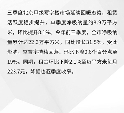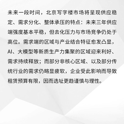 第一太平戴维斯(Savills)发布2025第三季度中国办公楼市场回顾及展望。中国写字楼市场仍映射出宏观经济的两速格局:新经济产业迅速扩张,传统行业持续承压。科技与制造企业偏向自用或迁入产业园区,传统企业则缩减面积、寻求更高性价比。