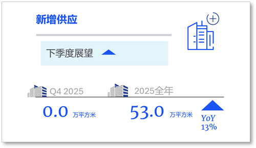 2026年,全市将保持高供应态势,全年预计有8个项目超80万平方米供应会进入市场,其中琶洲供应占比约60%。在2026年市场维持高供应以及需求保持常态化的背景下,预计全年空置率将在当前水平继续上升约3.0-4.0个百分点,持续空置压力大概率会促使业主保持灵活的租赁策略,短期内租金预计将继续承压。