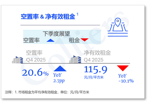 截至2025年四季度末,广州全市甲级写字楼净有效租金录得115.9元每月每平方米,环比下降1.2%,同比下降10.1%,全年租金降幅与去年保持持平。
