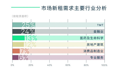 TMT (33%)、医药及生命科学 (24%) 及3C电子产品 (21%) 为季内租赁需求的主要来源。科技企业在商务园区各子板块中多点开花,正值高速发展阶段的游戏公司在漕河泾保持强劲扩张态势,电商运营与直播类租户分别选址临空与金桥板块,云计算与区块链企业分别在张江和市北录得大面积成交;医药研发租户选择在张江板块内实现升级搬迁,而具备性价比优势的浦江与外高桥板块亦吸引部分相关企业;电子产品租户中,半导体与手机类企业在张江与金桥完成扩租。此外,新能源汽车为主导的消费品制造业以及各类能源化工企业亦录得新租或搬迁成交。扩张与新设仍为本季度主要成交类型,持续释放的旺盛需求致各板块空置率呈现不同程度的下降。租金方面,区别于上半年张江与漕河泾领涨全市租金的情况,三季度各子市场租金水平均实现正增长,推动全市平均租金报价与有效租金较上季分别上涨1.0%与1.3%。
