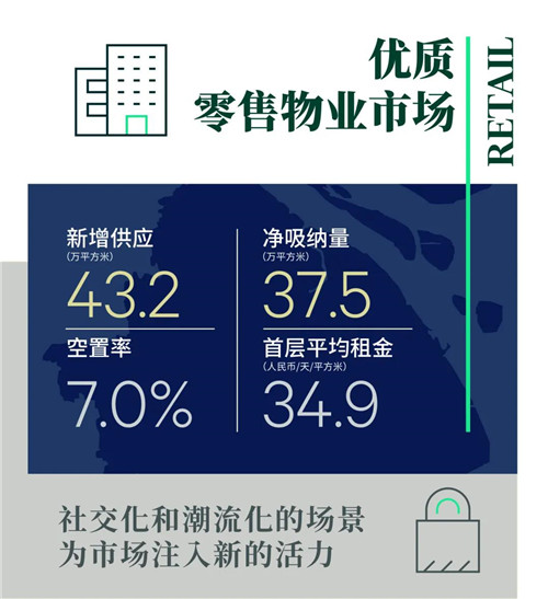 第三季度市场共录得三个优质项目入市,分别是北外滩来福士、瑞虹天地太阳宫以及前滩太古里,共计43.2万平方米。由于新项目均由成熟开发商精心打造,加上零售、娱乐、餐饮等各类品牌首店占比颇高,因此整体开业率普超70%。
