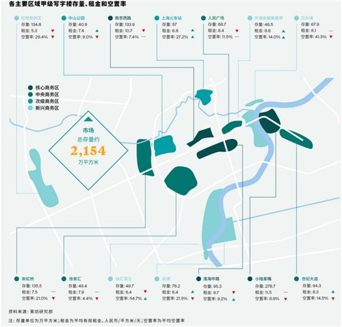 徐汇滨江的阳光滨江中心在第四季度入市,为市场带来近115,000平方米的办公面积。由石榴集团开发的长宁国际也在第四季度竣工交付,该项目位于长宁区地铁虹桥路站,为市场带来近140,000平方米的办公面积。