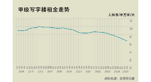 第三季度,办公面积去化缓慢以及新项目与存量面积之间的激烈竞争,使得业主方仍将降租作为吸引租户的主要手段。甲级写字楼市场租金当季环比继续下跌4.1%至每天每平方米人民币6.25元。其中,中央商务区扩展区的写字楼市场租金环比大幅下跌7.2%。核心商务区在多家金融机构以及律所搬迁需求的释放下,市场租金的跌幅收窄4.2%至每天每平方米人民币8.46元。