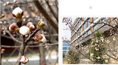 漫步园区,视线中姹紫嫣红,万绿千粉,与园区建筑、周边环境协调融合。那些嫩嫩的黄、淡淡的粉、优雅的紫,那些泛绿的树枝,和煦的阳光,让工作之余走出办公室的你赶赴一场春天的约会。