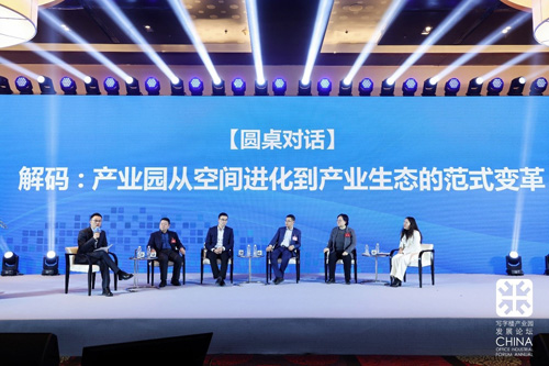 在"解码:产业园从空间进化到产业生态的范式变革"为主题的圆桌对话环节,特邀中科钛领科技集团高级副总裁安侠睿担任主持,中科产城(北京)建设开发有限公司董事长郭莹辉、北京兆泰城市更新发展有限公司副总经理葛晓宁、中海北京新城公司写字楼事业部总监段建乐、盈科律师事务所资本事务部主任吕馨、中电建产投雄安商管公司副总经理周洁进行了热烈讨论和观点交锋。