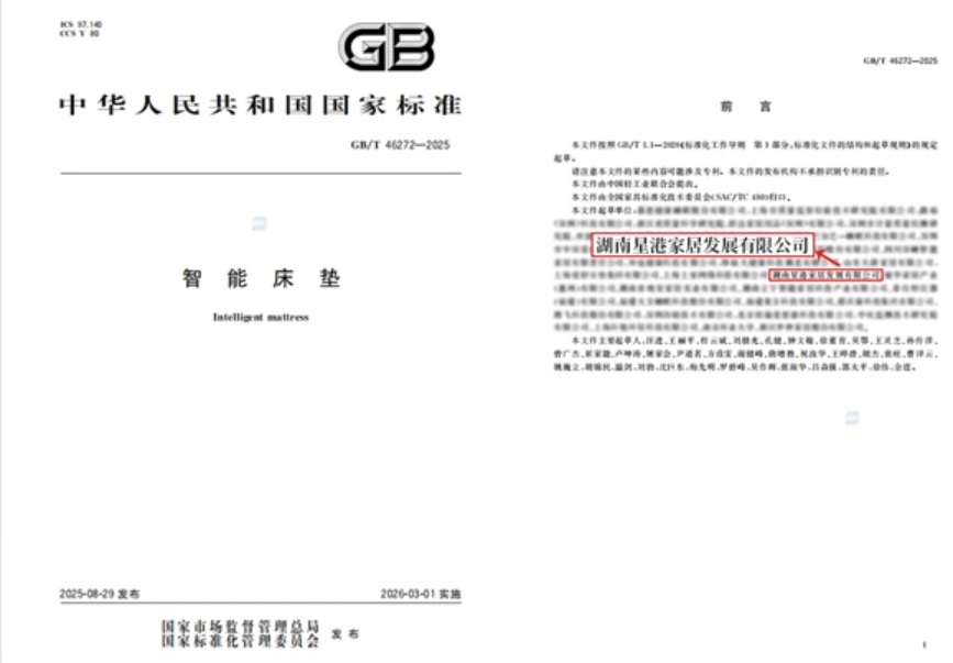 从参与制定国家标准,到推出引领行业的智能手工床垫,星港家居正以实际行动推动中国智能睡眠产业走向高标准、高质量的发展新阶段。
