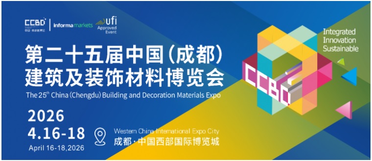 2026年4月16-18日, 第二十五届中国(成都)建筑及装饰材料博览会(简称:2026中国成都建博会)将在中国西部国际博览城盛大启幕。“创新引领,质造未来”不仅是时代赋予的使命,更是2026中国成都建博会的核心主题。本次展会展览面积16万平方米,将有2000+品牌、50000+新品、精品、藏品同台竞技,超50场行业活动精彩呈现……