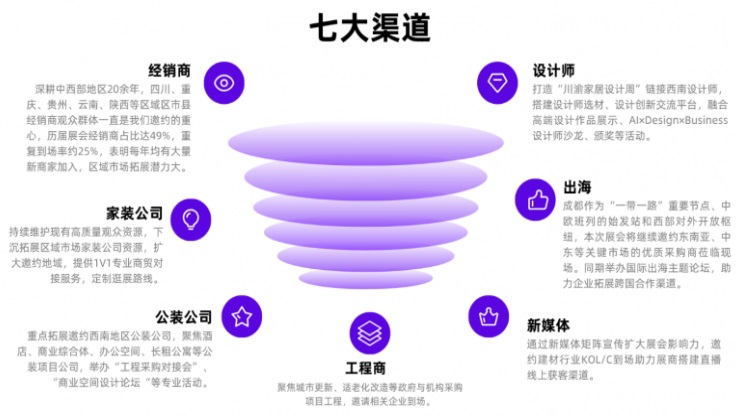 通过这七大渠道的协同发力,中国成都建博会将确保展会现场汇聚产业生态中各关键环节的决策者与影响者,实现商贸对接的高质量与高效率。