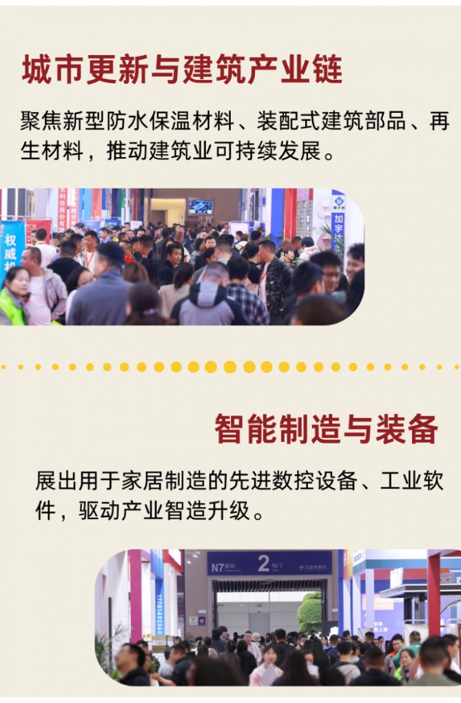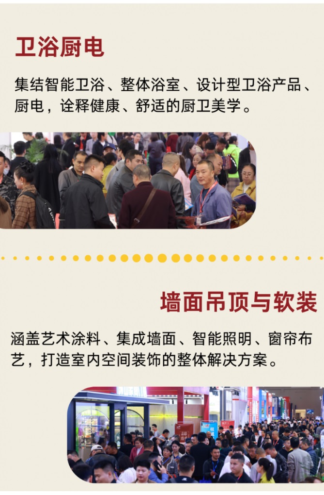展会已构建了一个覆盖产业链上下游的超级生态网络:与 65余家行业协会、300多家专业建材市场 结成战略联盟,联合百余家权威媒体进行全域曝光。