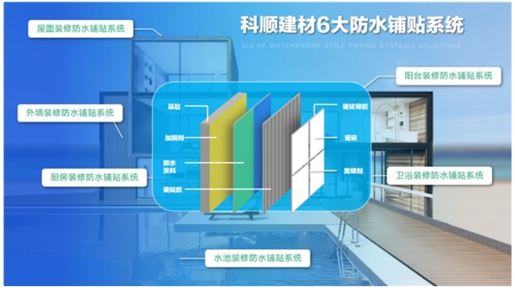 科顺建材六大防水铺贴系统,以其独创的“蜘蛛丝”黑科技防水系列为核心,为高端住宅提供“墙地分设,专防专护”的墅级防水系统解决方案。该系统不仅是一次材料升级,更是一次对高端住宅防水理念的重塑——以拥有科学内核的产品力,兑现“一次施工,一次就好”的承诺。