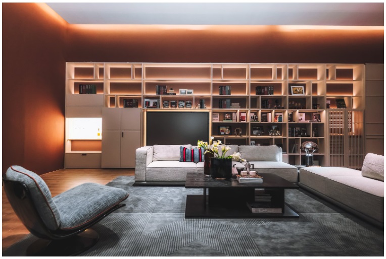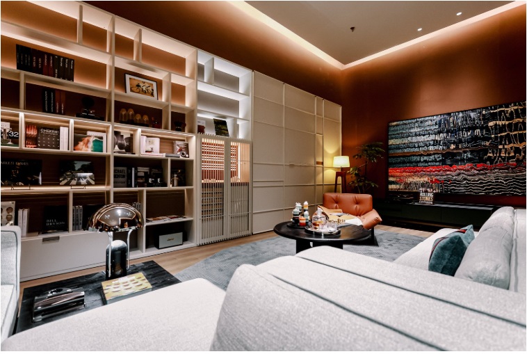 格局优化上,首次运用了FotileStyle创新推出的Link系统,通过对模块化的体系重构,服务于用户无限的、流动的、个性化的生活想象,为每一种生活提案提供答案,可覆盖起居、餐厨、办公、茶憩、亲子、收藏、疗愈、宴会等十大场景乃至更多个性化情境,让家“活”起来。不定义,只响应。灵活组合的模块化单元柜,在Link系统的调度下,不同生活场景得以自由切换,空间被赋予流动的自由与从容,氛围亦随人的情绪与节奏轻盈转变。这种高度自由的布局方案,不仅深度呼应了自然湖畔的治愈感与休闲度假的松弛美学,更重新定义了家不止于身体的居所,更是精神的栖息地与可随时抵达的“心域远方”。