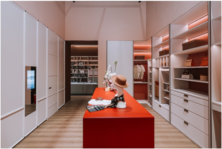 行业首创的置物模块在衣柜层板前口集成悬挂、平放、展示功能,将选衣试穿流程集中完成。衣柜层板的边界再次被突破,形成自在且高效的交互领地。竖向凹槽门型与隐形拉手设计,在静谧中展现秩序之美,不张扬却令人难忘。