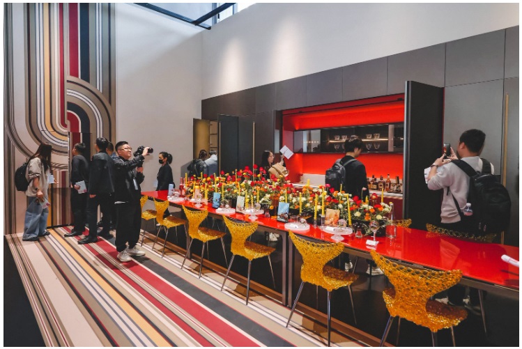不止于厨房,FotileStyle的智慧与诗意进一步延伸到大家居生态中的其他空间。慕士塔格系列以经典之姿惊喜再现,“赤霞”主题私宴会客厅聚焦私宴社交与会客需求,呈现“雅筵模式”的从容与优雅、“知己模式”的明朗与松弛,两大智慧场景再造空间待客之道。