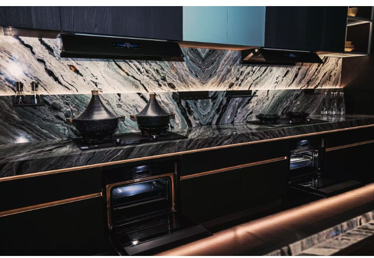 在勾勒出智慧全屋的整体蓝图后,FotileStyle进一步将目光投向家的核心场域,携洞庭系列载誉返场,以智慧重塑厨房的社交仪式。其“炊宴模式”启动时,烹饪区灯光聚焦暖意,烟机与电动抽屉同步开启,“寻物模式”一键定位食材,让下厨从劳作变为家的仪式。“观览模式”则完美适配开放式社交厨房场景,在烹饪与待客之间自如切换。