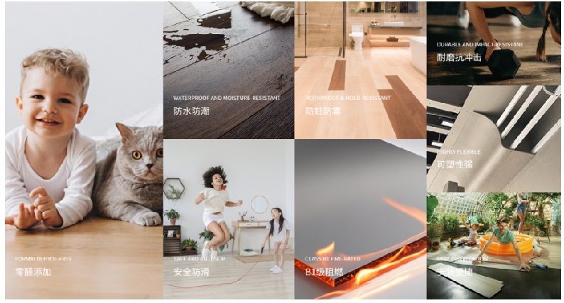 此外,石晶材料具备的防水防潮、防蛀防霉、B1级阻燃、高耐磨和防滑等性能,能系统性地应对老宅常见问题;而百余款原创花色,也能确保改造部分与原有风格和谐统一,避免新旧材料搭配不当的尴尬。