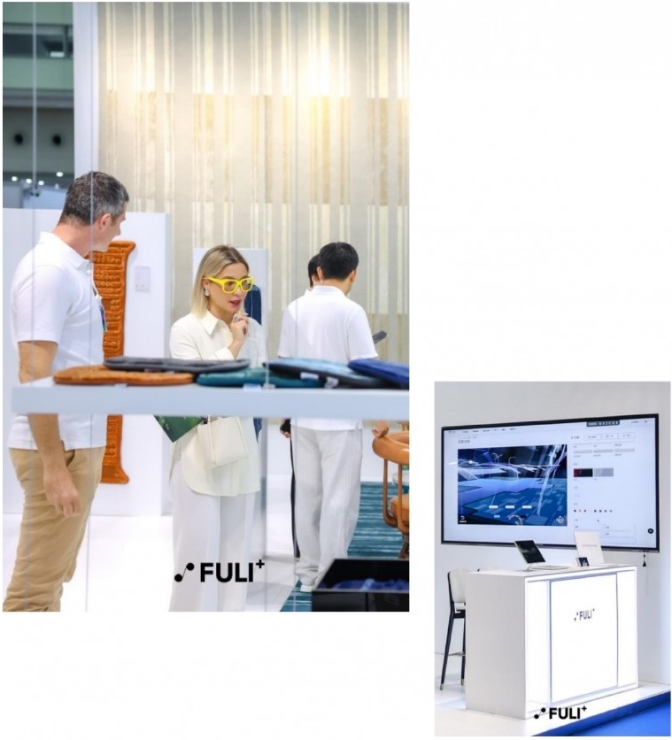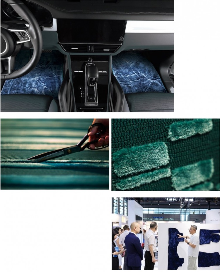 展会期间,FULI+展区成为汽车用品领域的焦点,吸引众多行业专家、车企代表与设计精英驻足交流。双方联合推出的「AUTO PADS」车用地毯系列,通过“回收-解聚-再聚合”的尖端循环科技,将废弃物转化为品质卓越的环保纱线,实现从材料源头到成品应用的全程可持续革新。