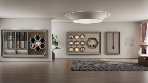 慕士塔格系列的潮玩空间完美诠释了这一哲学,整个柜电集成设计以光为笔,重塑空间视觉焦点。蜂巢柜采用前口六边斜打光方案,使光线从侧前方均匀照亮藏品,消除阴影,令手办的每一处细节都清晰可见。C位手办柜顶部配备专业级磁吸射灯,可根据手办大小自由移动打光位置,实现精准的焦点照明。玻璃门手办柜内部搭配均匀柔和的层板灯带,建立起“主次分明、重点突出”的立体光场;手办墙四周的隐藏式灯带,则以轻盈光晕将整个结构托起,营造悬浮般的视觉体验。让展示,真正成为一种由光雕琢的艺术。