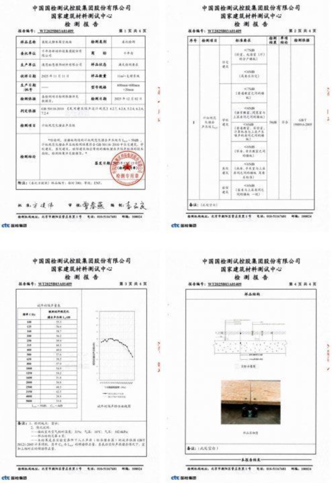 千年舟装配式静承架空地面,以环保OSB板材为核心基材,通过独特的架空结构设计,有效阻断脚步声、物品撞击声,为用户提供“即装即静”的解决方案。经过权威检测,其计权规范化撞击声压级Ln,w′=58 dB,远优于国家标准(<75dB),满足质控要求,而且施工采用的电钻、扳手等工具,噪音远低于传统切割机、搅拌机,对邻居影响小,低噪音,不扰民!