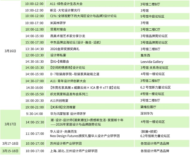 展会不仅是产品的秀场,更是思想的策源地。六天五夜,循光同行·全球合作伙伴大会、第55届国际名家具(东莞)展览会欢迎晚宴暨金羿十年盛典、开幕式三场重磅活动,一项行业大奖锚定产业航向,以及从“好房子”到“好生活”主题论坛、《1%:全球视野下的大湾区设计与品牌》设计论坛、老K·图帮城市联盟启动盛典、新见·大宅设计聚光行、华人设计·向美而生Neo Design Futures颁奖礼暨华人设计产业研学团,更有品牌开业等200+场同期活动则让这场盛会真正“活”起来——思想的密度、交锋的烈度、链接的深度,每一天都在这里发生化学反应。
